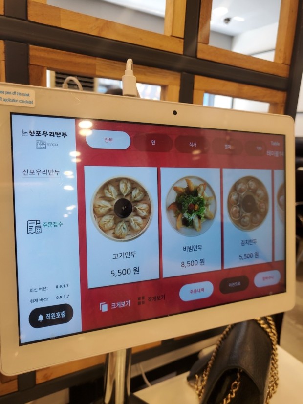키오스크입니다. 메뉴를 선택했어 주문하기 눌러면 직원들이 왔어 갔다 줍니다.