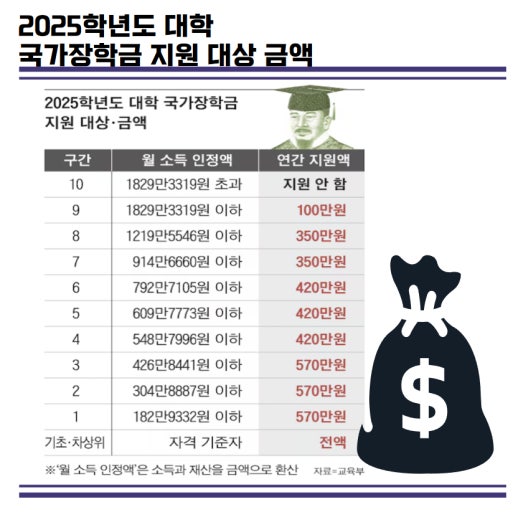 | 기초생활수급자 | 전액 | 등록금 전액 + 생활비 일부 |