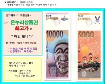 온누리상품권을 매입하거나 현금화하려면 공식 매입업체를 이용하세요.